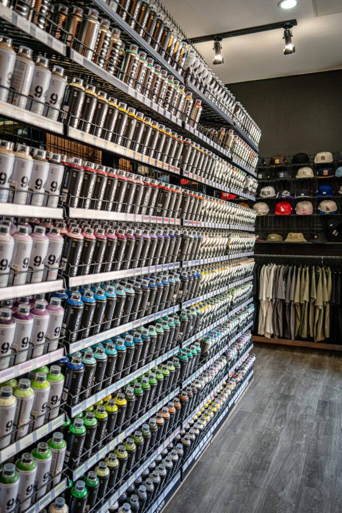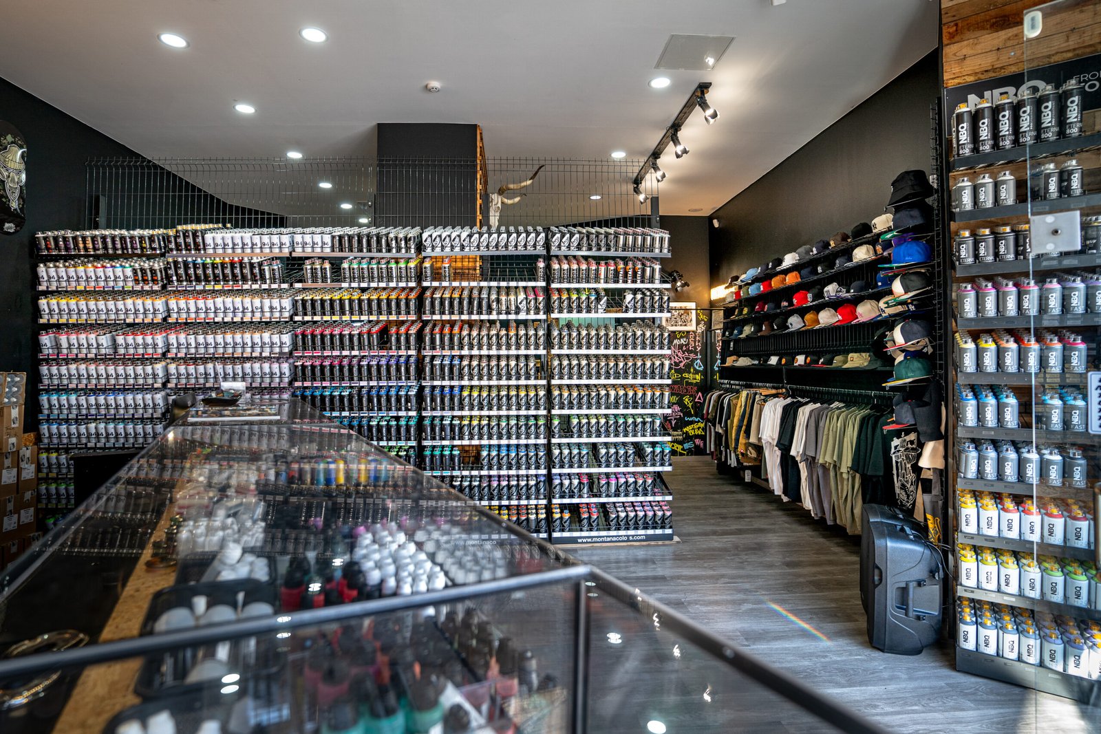 Latas (vários acabamentos), caps, markers, acessórios e streetwear selecionado. Trabalhamos com material para iniciantes e para writers experientes — com foco em qualidade e variedade.