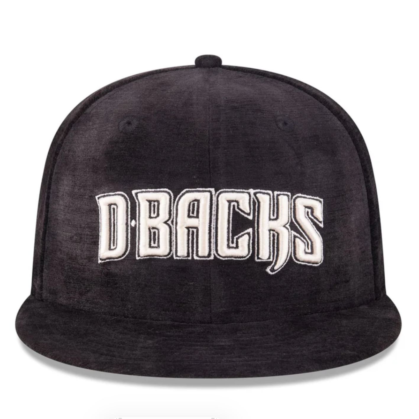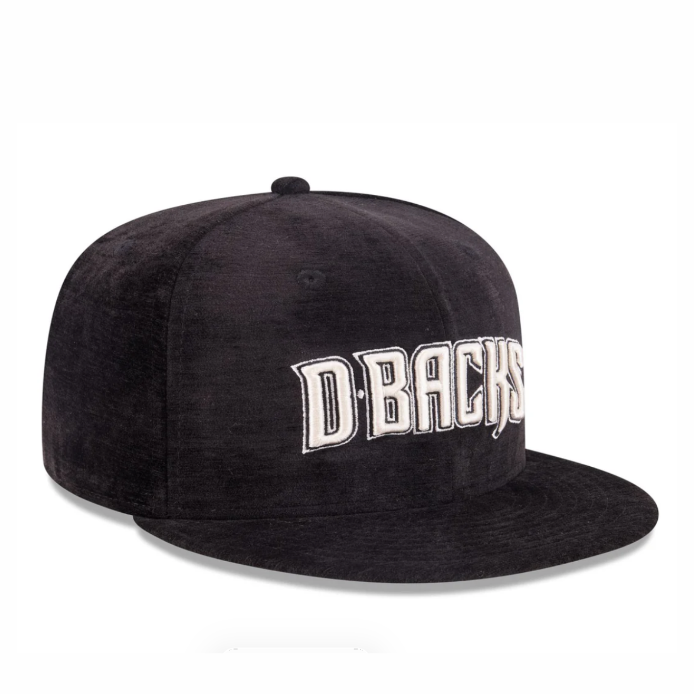 O cap New Era Arizona Diamondbacks Black Velvet 59FIFTY Fitted Cap apresenta um design totalmente preto com acabamento em veludo em toda a estrutura.